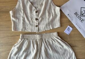 Conjunto de lino, Lina – Chaleco + Short de Lino Rayado
