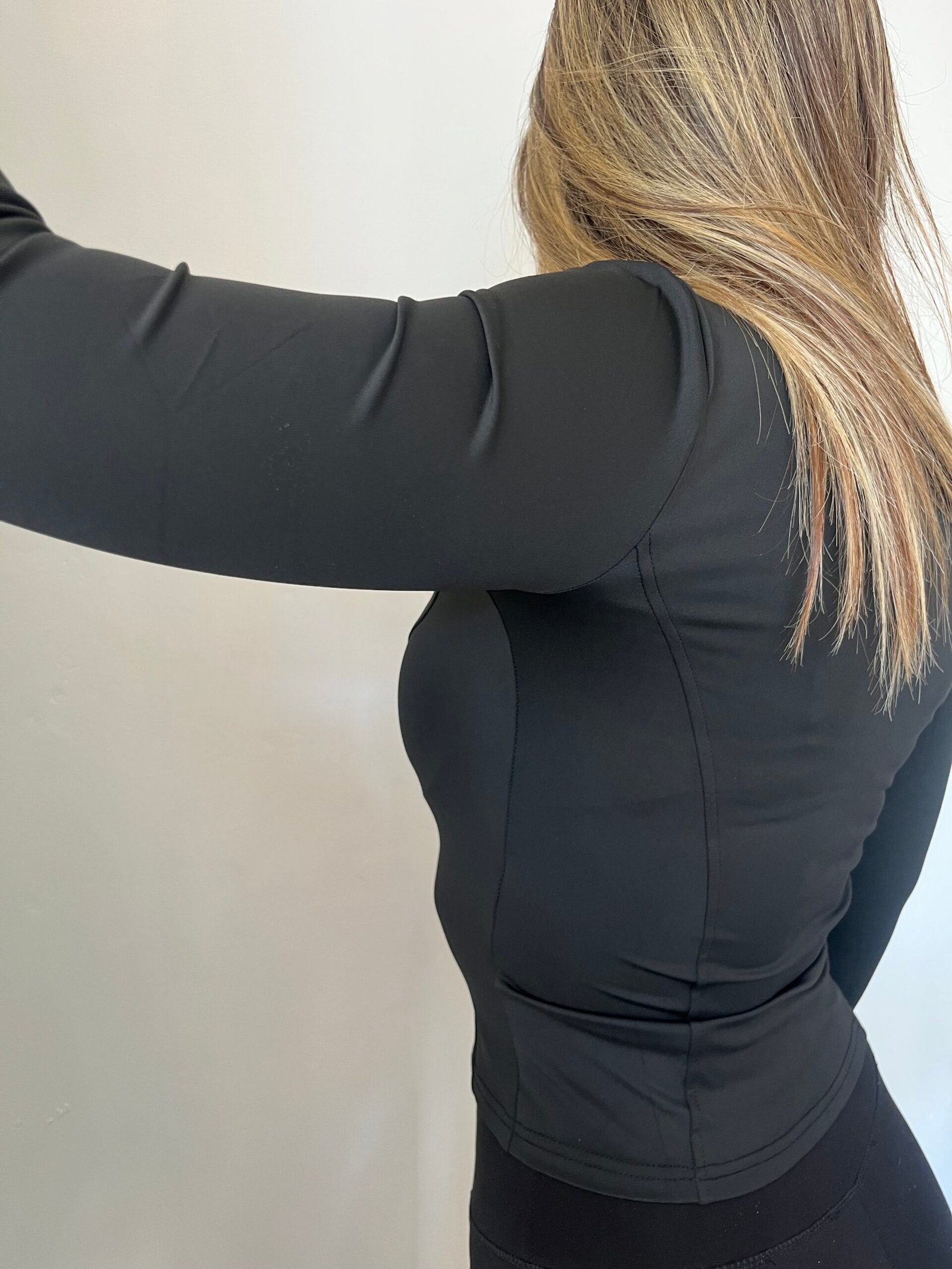 Una prenda que une diseño y funcionalidad. Su corte fit estiliza la silueta y realza la cintura, mientras que las aberturas en las mangas para el pulgar le aportan comodidad y practicidad en cada movimiento.