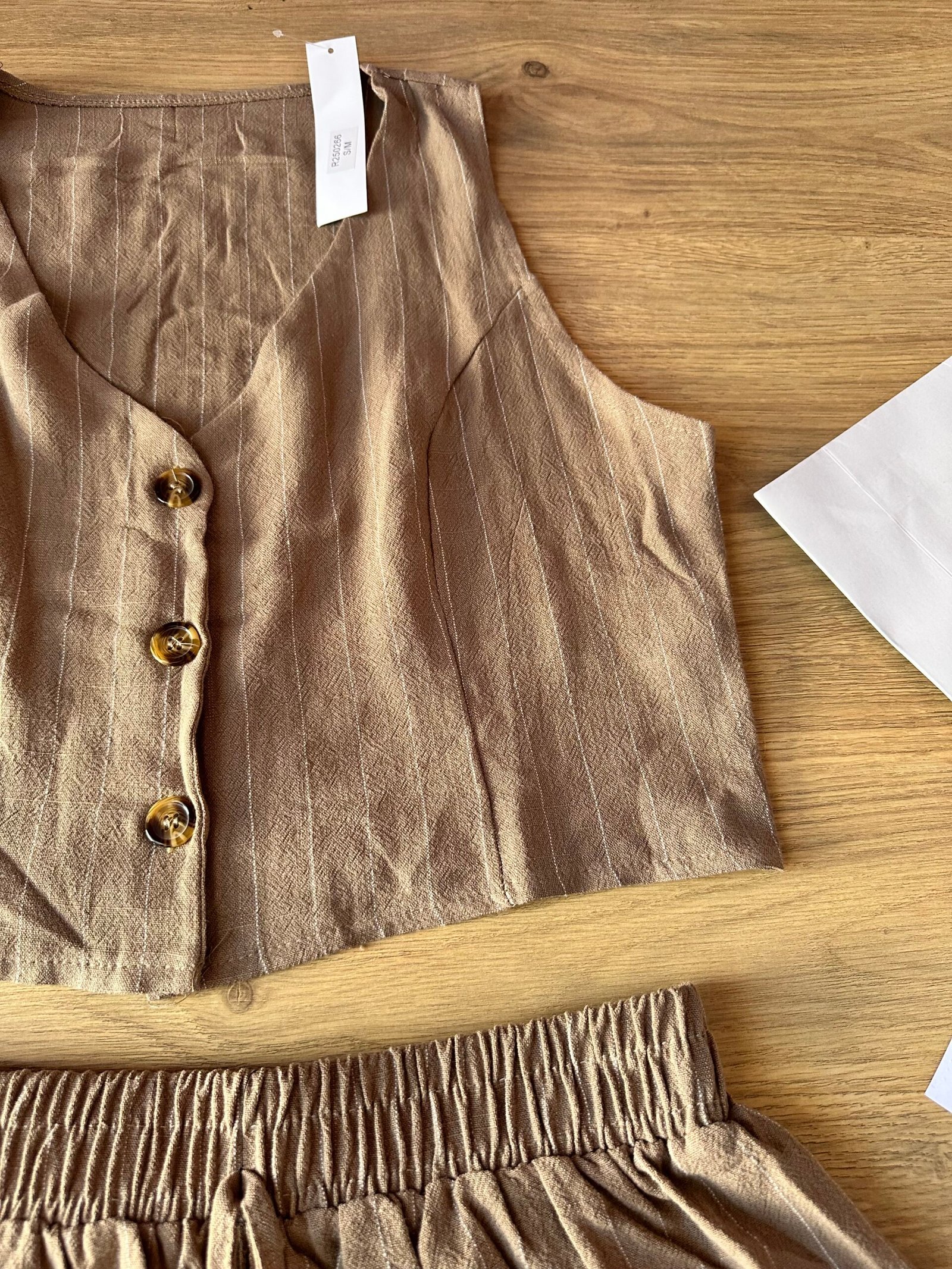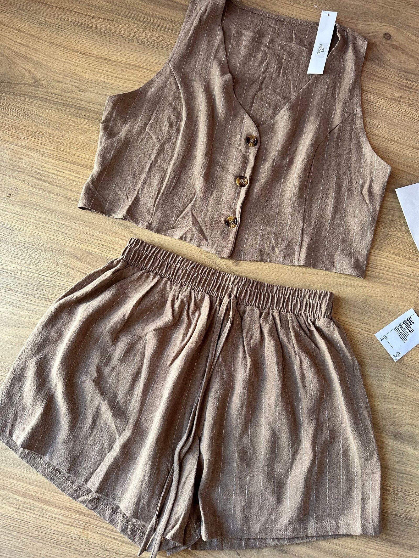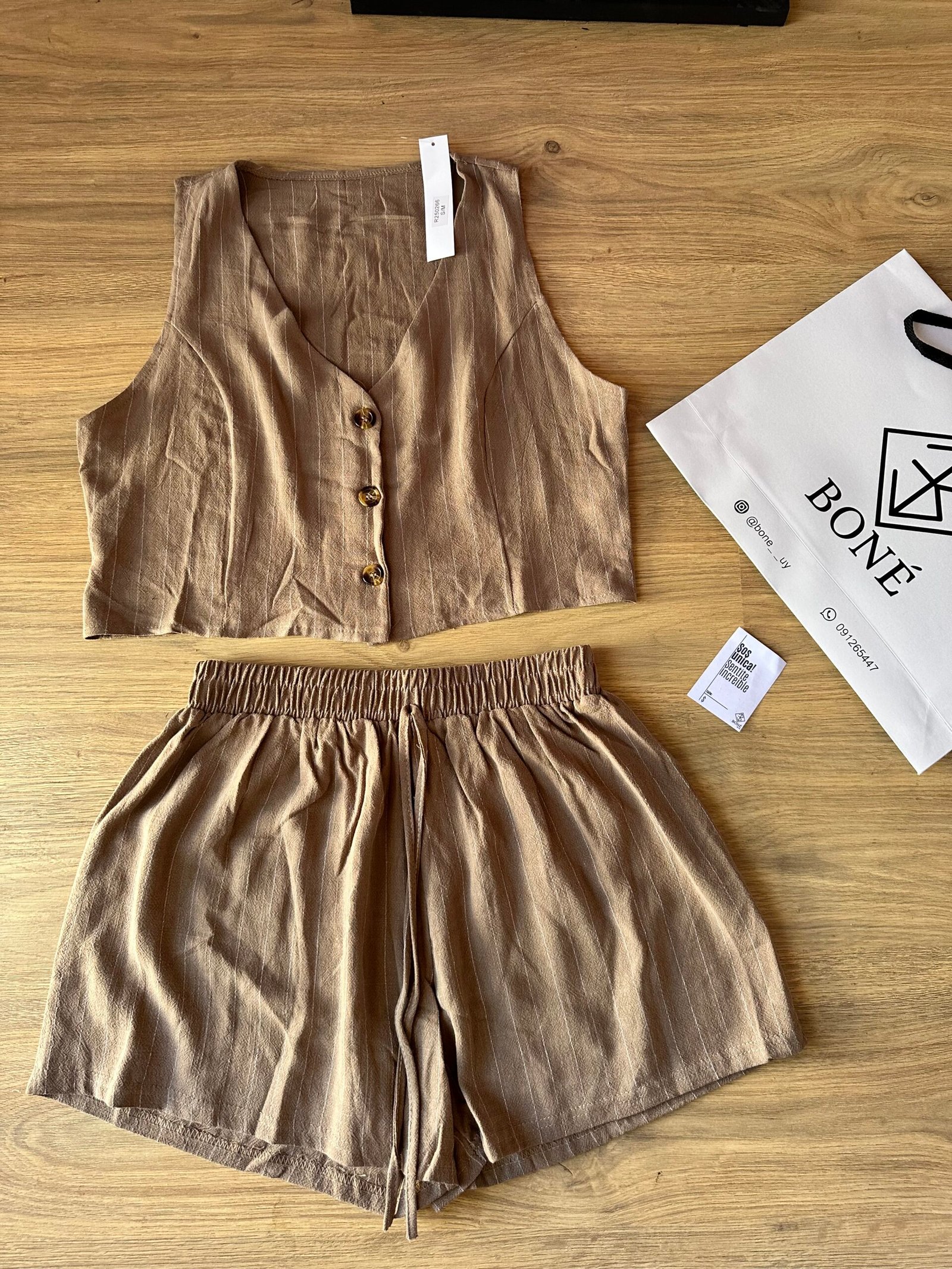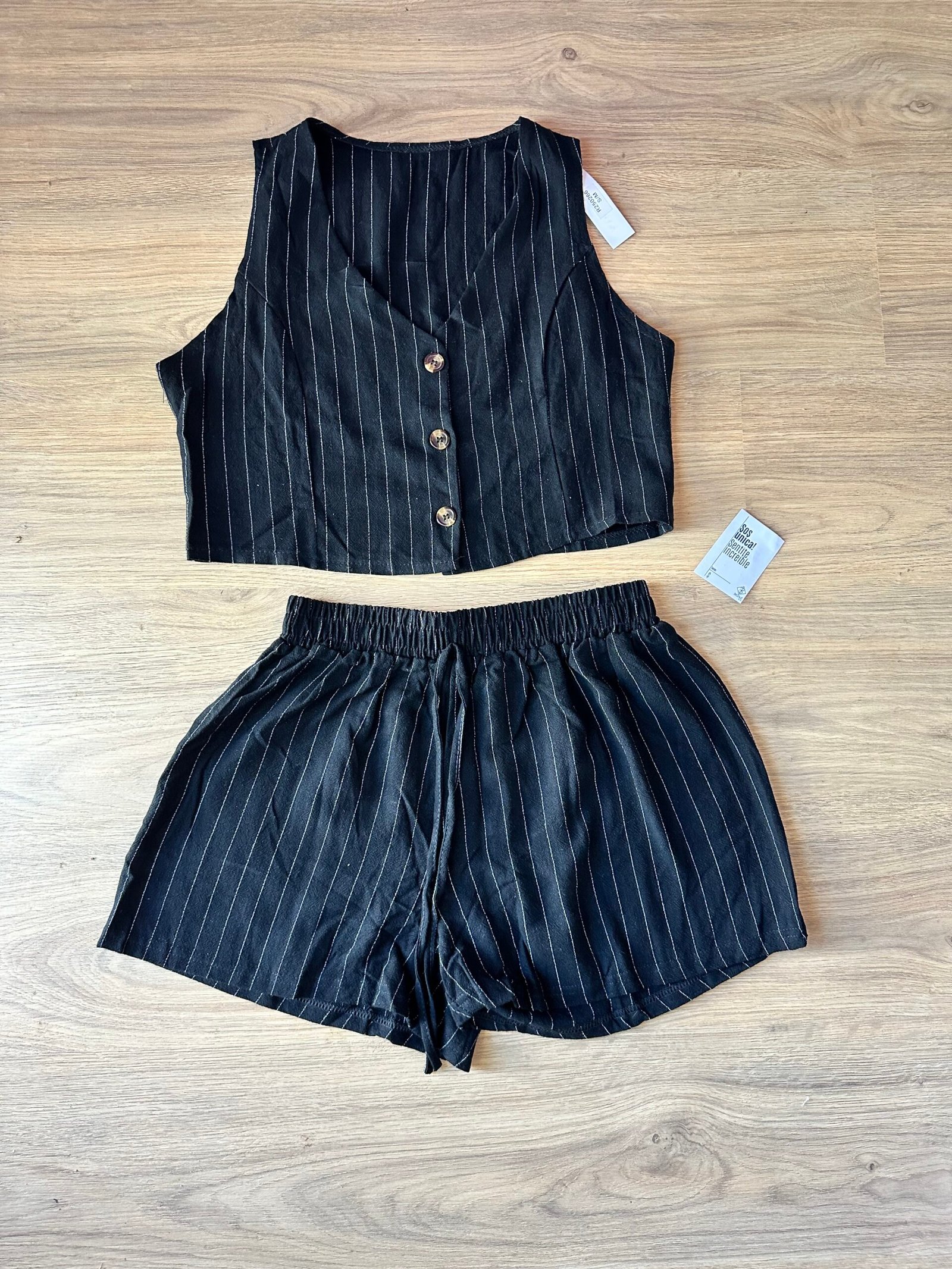 Nuestro conjunto Lina combina frescura, comodidad y estilo en una sola prenda. Incluye un chaleco corto con botones y un short de tiro medio con cintura elástica, ambos confeccionados en lino rayado liviano y suave. Perfecto para el verano, súper combinable y ideal para usar tanto de día como de noche.