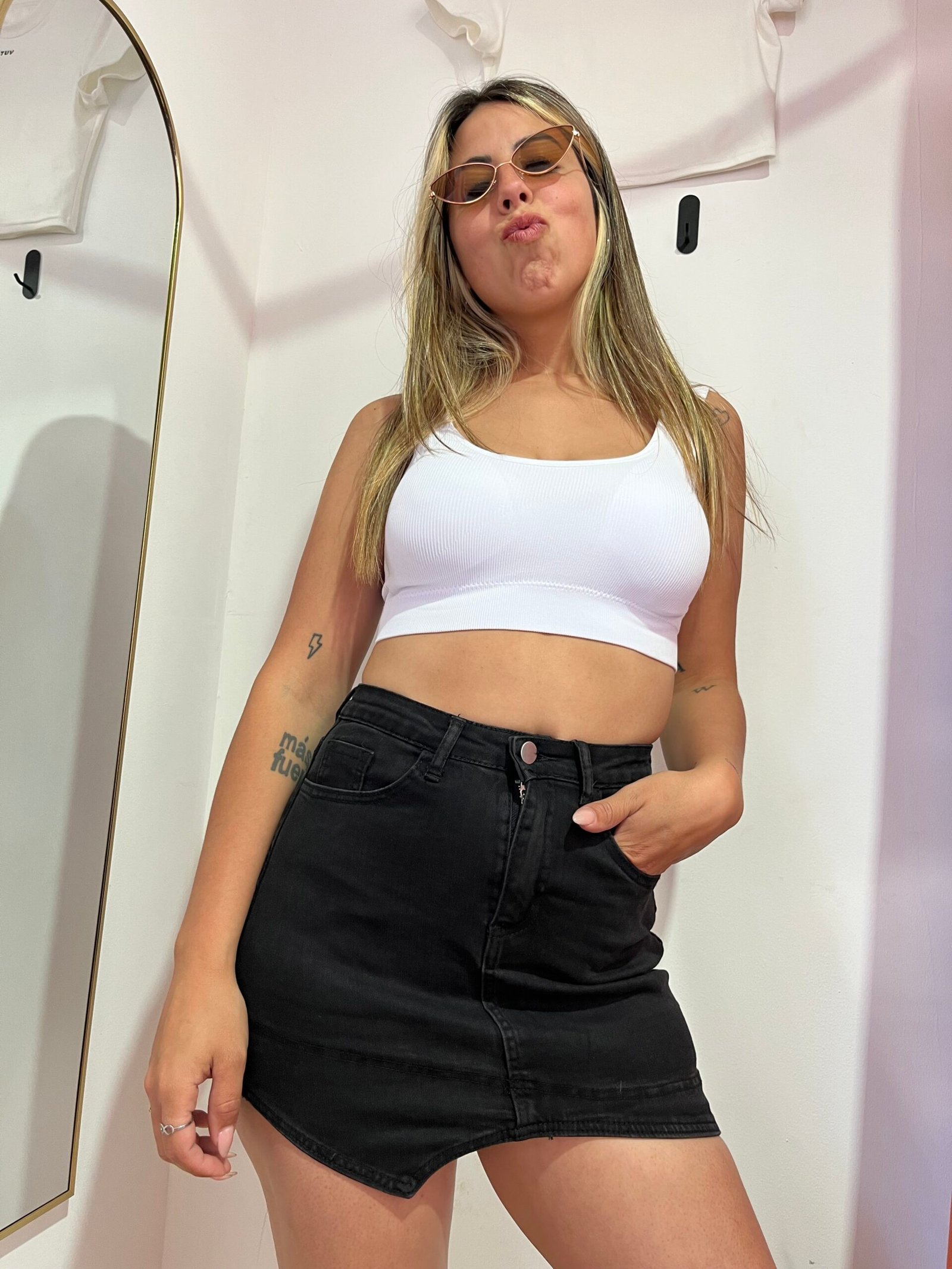 Pollera short denim de diseño irregular